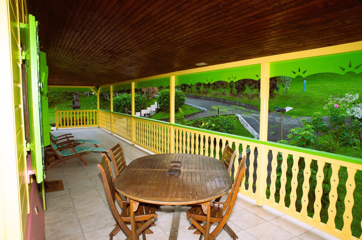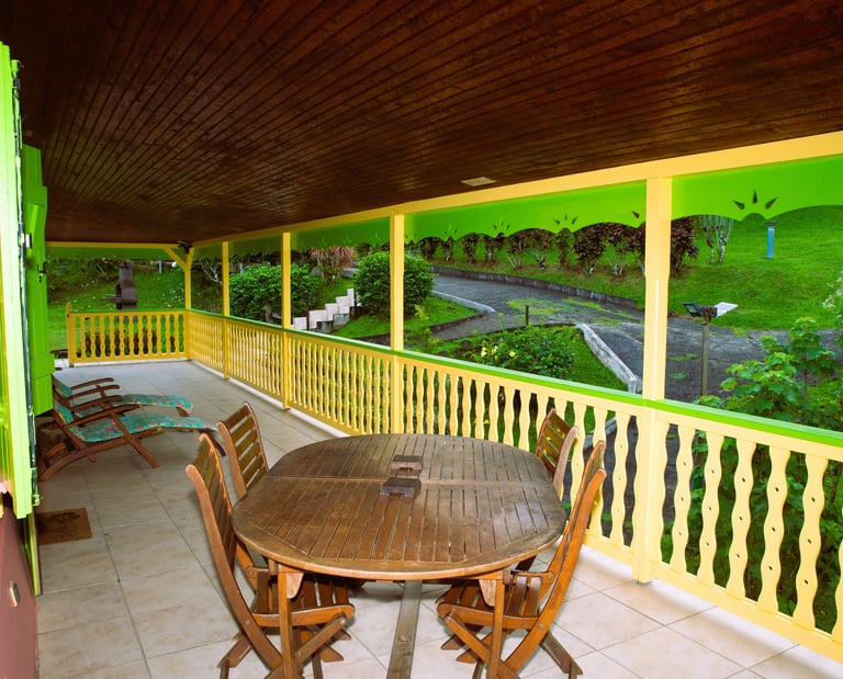 À l’origine dominé par des teintes naturelles et boisées, le décor a évolué vers un style colonial affirmé. J’ai choisi d’apporter de la vie au mobilier grâce à des couleurs caribéennes vives, le tout accompagné d’un jardin généreusement fleuri offrant gaieté, réconfort et de vastes espaces de détente.